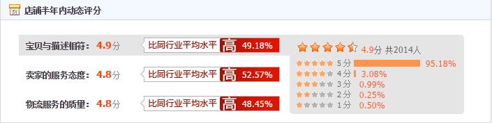 还有就是大家要知道店铺的DSR动态评分是会影响你的搜索排名的。而有的商家说我的DSR都是好的,都是红的怎么会出问题呢?那么这里大家就进入了一个误区,是谁说DSR只要是红的就没事的,要知道这个DSR的评分是代表着消费者对产品和店铺的整个满意度,如果说出现了持续的下滑趋势,那么你就需要去注意了。而有很多的时候,你并没有出现违规降权,,但是店铺的搜索流量却在不断的下滑,这个时候你就需要去看下你的店铺的DSR动态评分是不是出现了持续下滑的趋势。